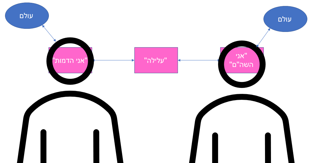 כל משתתף במשחק מדמיין את ה"עולם", המרחב המדומיין; לכל משתתף במשחק יש תפקיד חברתי שנמצא תחת מערכת של הנחות, חוזים חברתיים, חוקים בשיטה וכן הלאה ("אני השה"ם", "אני הדמות"), ומה שמתרחש בין המשתתפים במשחק, זו העלילה, מה שגורודין, בעקבות אלקיים-שלם, מתאר בתור: "משא ומתן בין ציפיות עלילתיות… תיאום ציפיות בלתי פוסק" (שאני קורא בתור הסכמה מלאה לפירוט בטקסט הזה עד לנקודה זו).